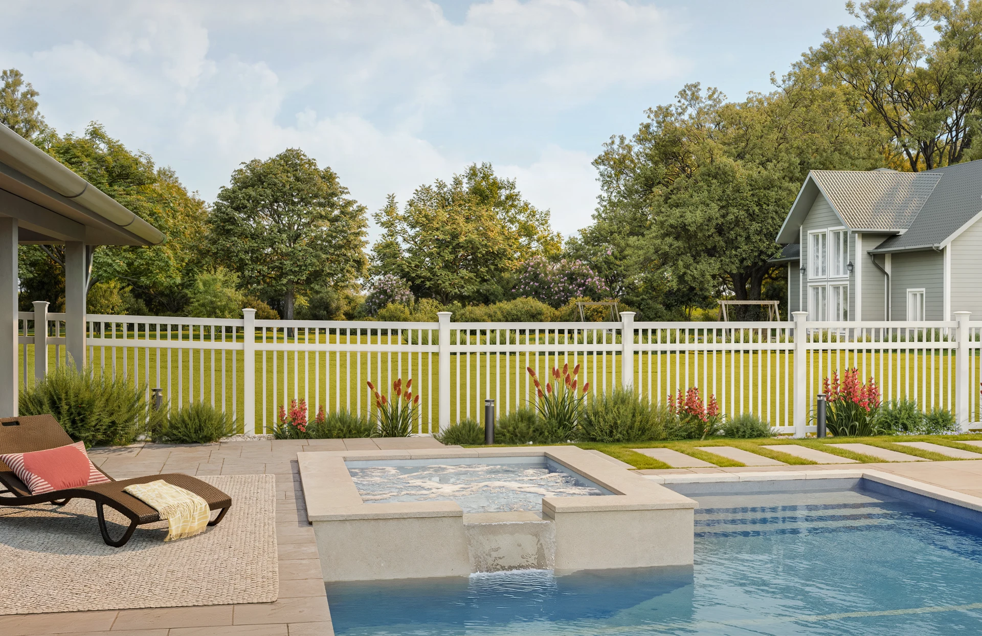 Contemporary protection with timeless charm — Norwalk Slim elevates outdoor spaces like pools and recreational areas with a sleek, modern profile that doesn’t sacrifice charm. Available in bright white, warm sand, or TimberGrain™ finishes, it offers unmatched durability with refined design.